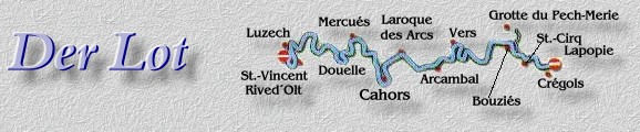 Im Laufe der Erdgeschichte hat der Lot sein Flußbett in die trockene Hochebene des Quercy gegraben, sich ein grünleuchtendes Tal geschaffen . . . Strenge und Zartheit verbinden sich: der Lot - ein Fluß von bestechender Schönheit, wild und zart zugleich. . . |